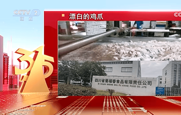 今年央视(shi)315晚会曝光(guang)“漂白(bai)的(de)鸡(ji)爪”,四(si)川(chuan)省蜀福香食品有限责任公司被点名。