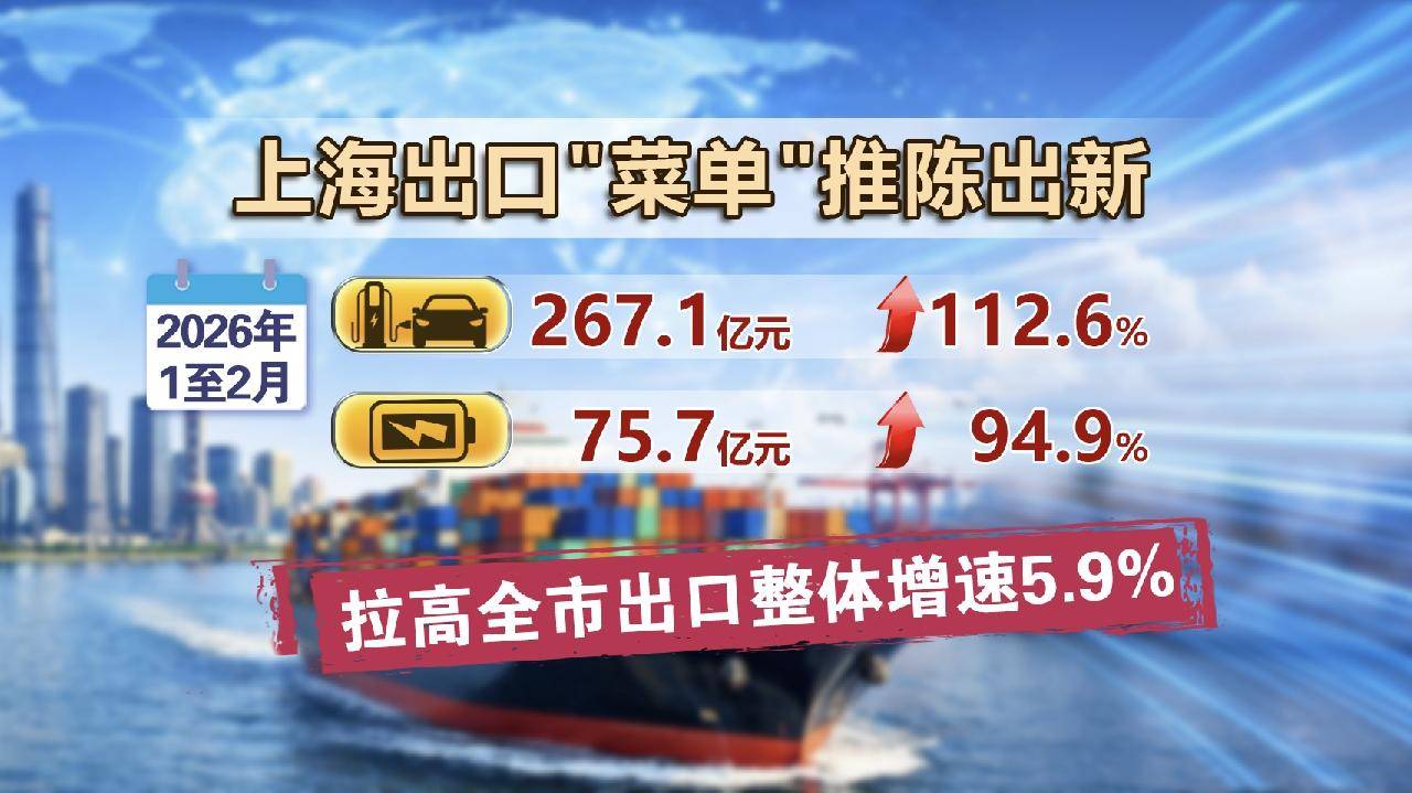 那上(shang)海带给全球市场哪些好产品呢?总(zong)结一(yi)下枢纽词,那就是以高技能、绿色化为代(dai)表的新动能产品。前2个月,电动汽车、锂电池的出口(kou)增(zeng)速一(yi)个涨了一(yi)倍多、另一(yi)个涨了九成五。仅这两项就拉高全市出口(kou)整体增(zeng)速5.9个百(bai)分点。