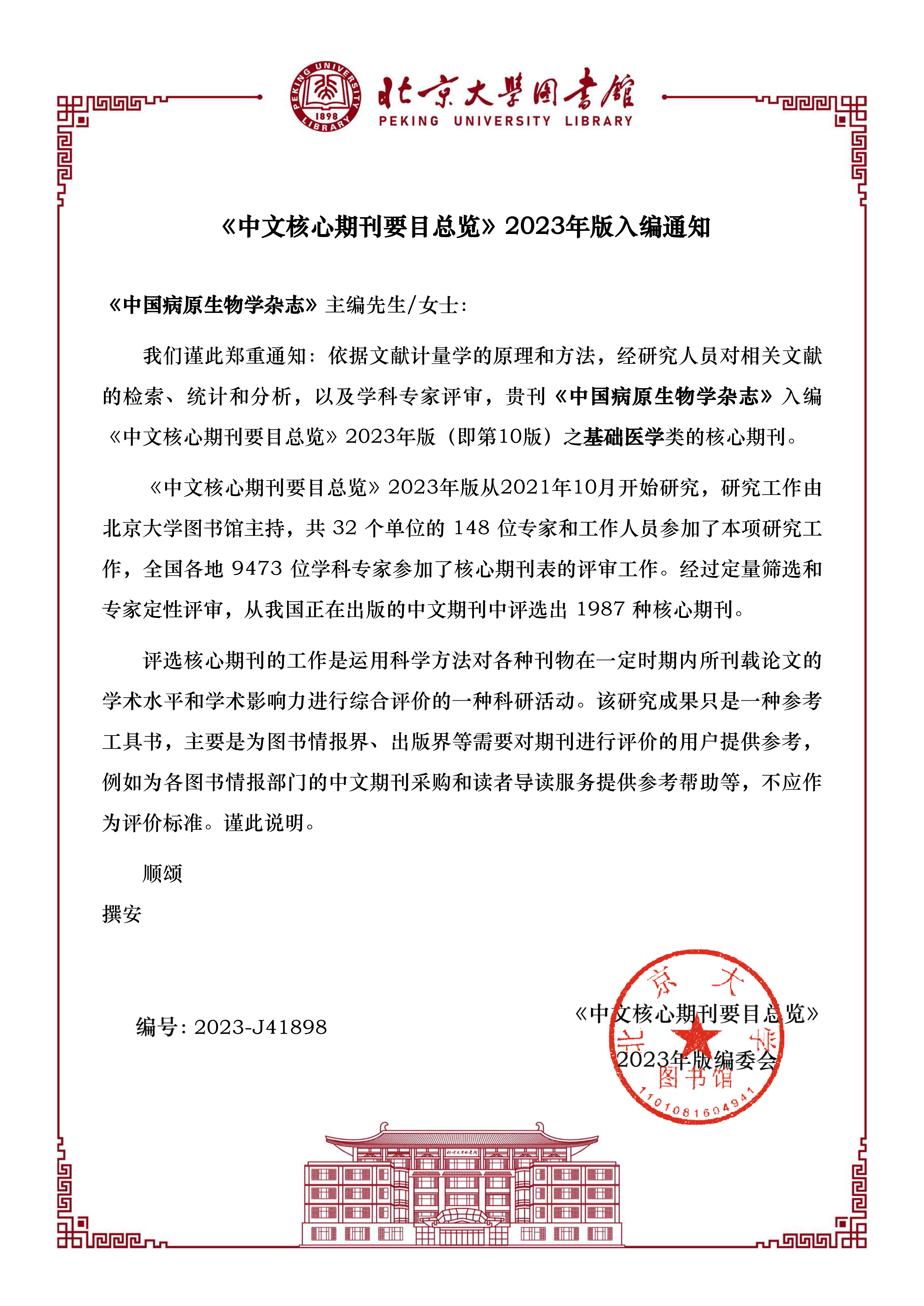 北核入编通知2023-中国病原生物学杂志