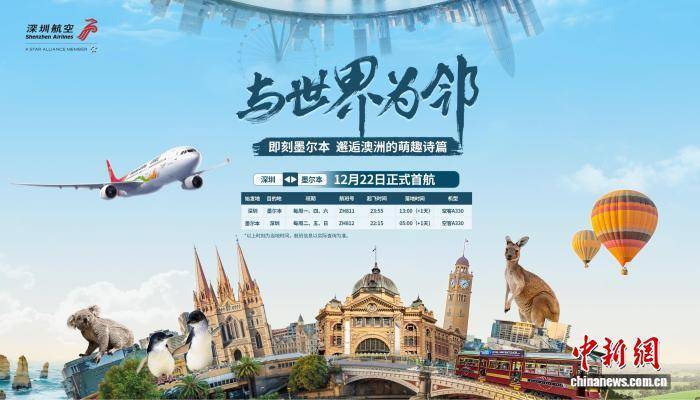 深(shen)圳直飞澳大利亚墨尔本航路海报。深(shen)航供(gong)图