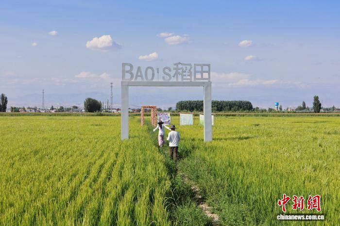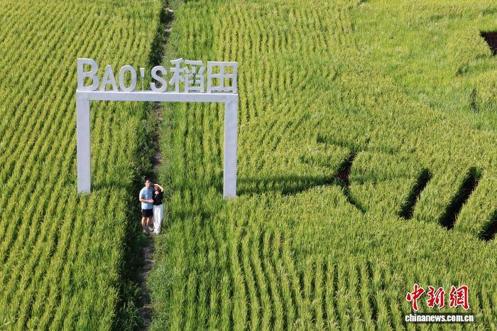 8月8日,新疆伊犁察布查尔县(xian)纳(na)达齐牛录(lu)乡“稻光(guang)谣”景区,旅客在稻田游玩(wan)。中新社记(ji)者 蒋文月 摄