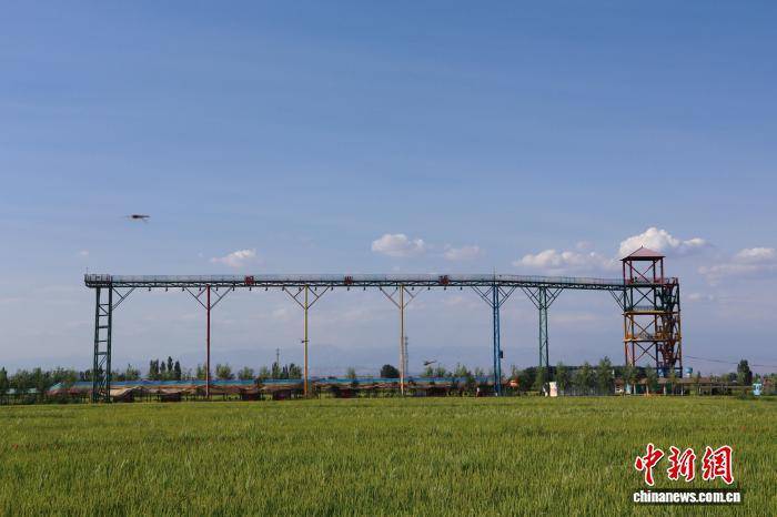 8月8日,新疆伊犁察布查尔县(xian)纳(na)达齐牛录(lu)乡“稻光(guang)谣”景区,高27米的玻璃栈道矗立在稻田间(jian)。中新社记(ji)者 蒋文月 摄