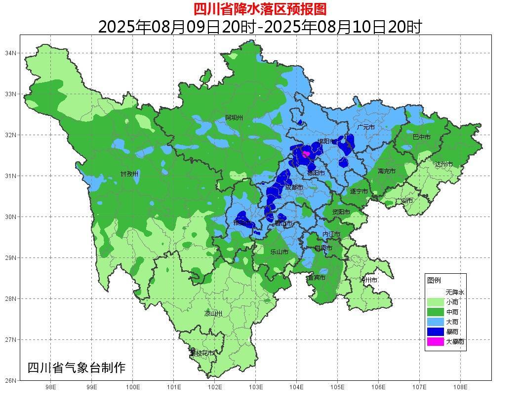 四川省(sheng)气象(xiang)台8月8日下午发布(bu)最新天气预报:预计8月9日到11日,全(quan)省(sheng)有一(yi)次明(ming)显的降雨天气过程,并伴有短时强降水、阵性大(da)风等强对流天气,局地风力可达(da)8级或以上,其中(zhong)盆地部分(fen)地方有大(da)雨到暴雨,局部大(da)暴雨;川西高原和凉山州北部有中(zhong)到大(da)雨,局部暴雨。