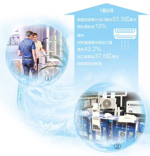 海关总署公(gong)布的数据显示,正在客岁(sui)较(jiao)高基数底子上,本年1月至(zhi)6月,中国对欧盟国家空调出(chu)口量同比增长43.2%,出(chu)口金额达37.6亿美圆,创同期历史新(xin)高。