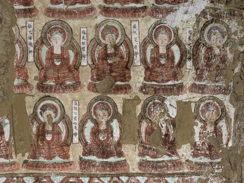 雅尔(er)湖石窟第4号窟券顶千佛(局部)