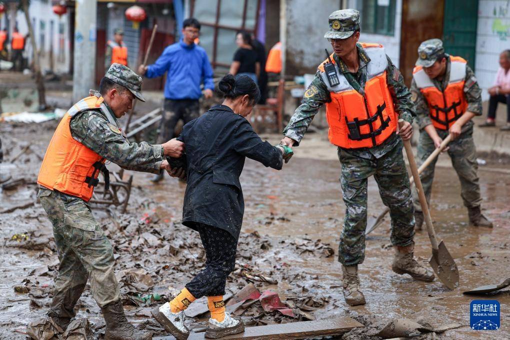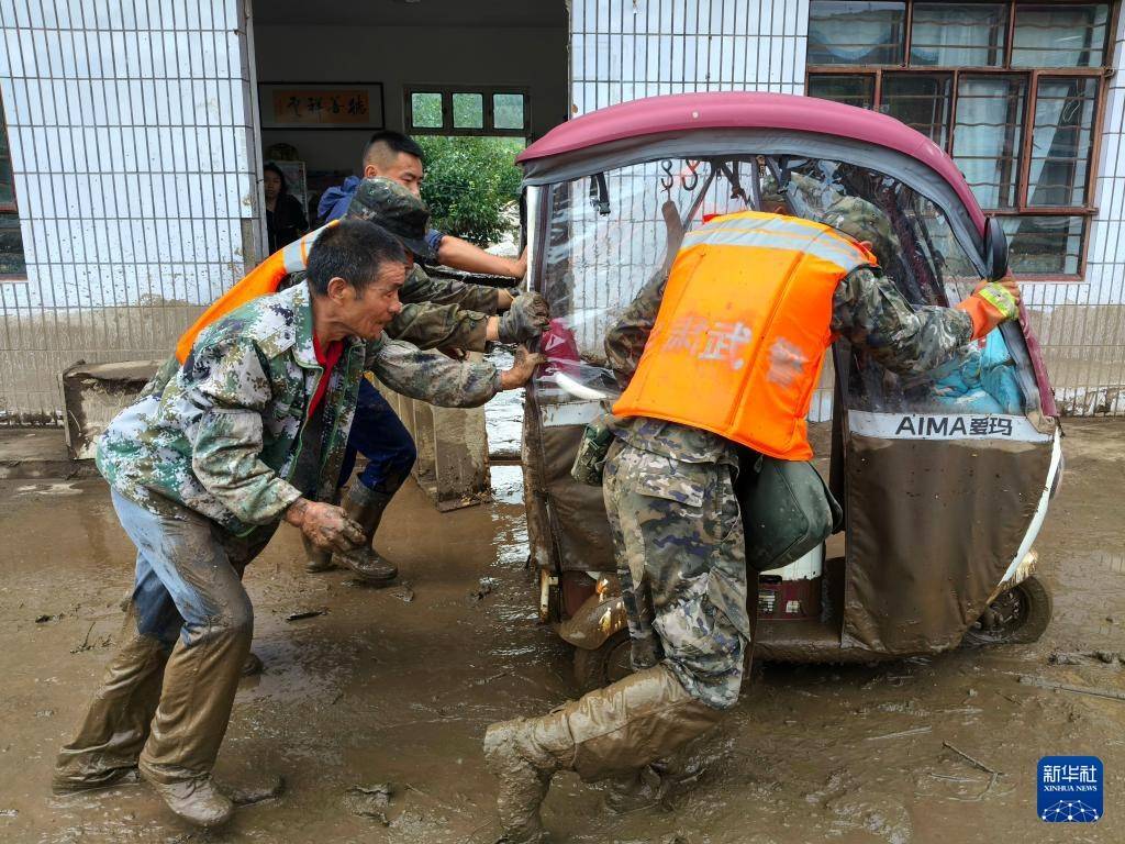 8月9日,武警甘肃总队官兵在兰州市榆(yu)中县(xian)马(ma)莲滩村、兴隆山村、新营镇、小康营乡、旧庄沟村等5个方向,展开转移被困群众、转运受损(sun)车辆、清理淤泥(ni)等任务。