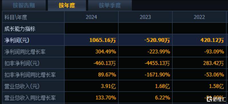 2024年(nian)公司营收达到3.91亿元,同比增长133.70%,比拟2022年(nian)的1.58亿元,两年(nian)间营收增长超(chao)过(guo)150%。