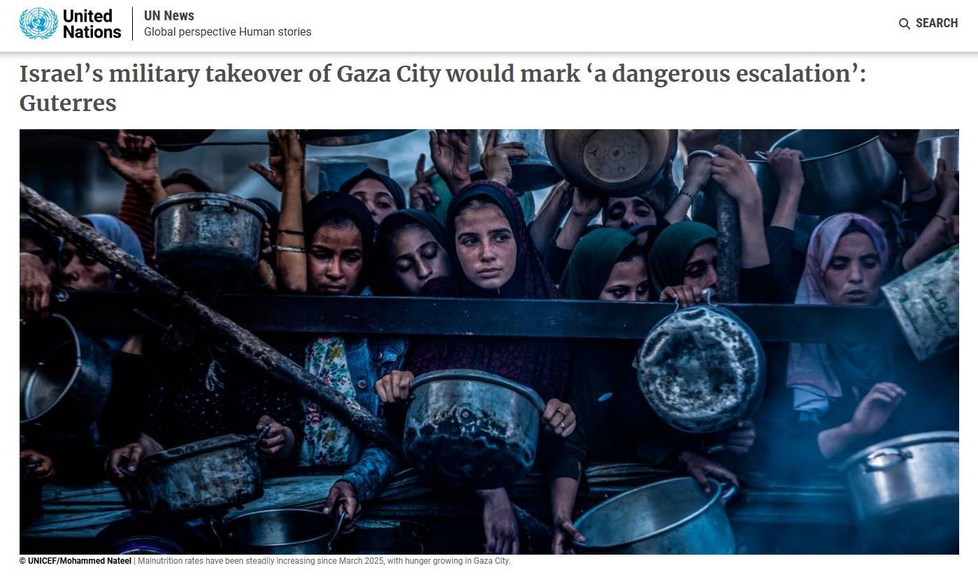 联(lian)合国秘书(shu)长古特雷斯通过谈话(hua)人发表(biao)声明,对以色列(lie)政府决定(ding)“控制加沙(sha)城”透露(lu)表(biao)现严重(zhong)关切,称这一决定(ding)是“危险的进级(ji)”,可能加剧本(ben)已对巴勒斯坦人民造成灾难性后果的局势(shi),进一步危及更多生命,包含仍被拘留收(shou)禁人质的安全。