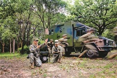 ↑官兵组织野(ye)外抢(qiang)修训(xun)练。靳博成 摄