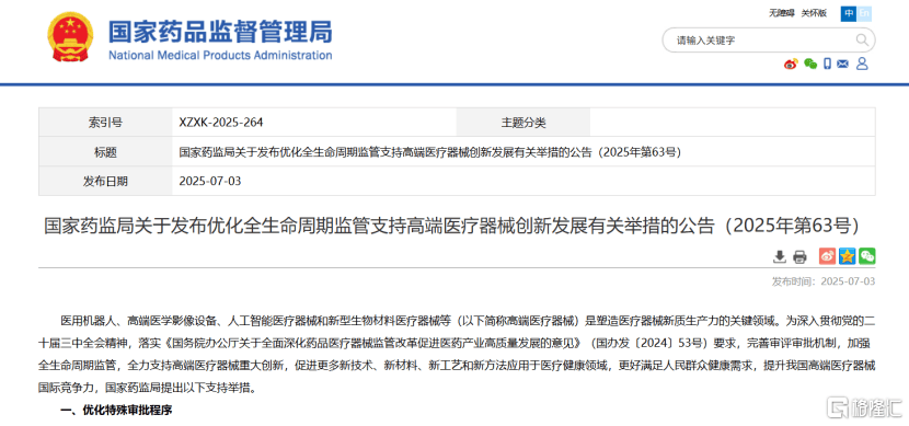 此次产品(pin)获证(zheng)正值政(zheng)策红(hong)利释放期。7月3日,国家药监局(ju)正式印(yin)发(fa)《关于优化全生命周期监管支持高端医疗(liao)器械创(chuang)新发(fa)展的公告(gao)》,明确支持高端医疗(liao)器械自主创(chuang)新与进口替代,并特(te)别强调在人工智能医疗(liao)器械领域加快培育以(yi)高端医疗(liao)器械为(wei)代表的新质生产力(li)。中信证(zheng)券分析指出,在国际贸易环境波动(dong)背景下(xia),国产企业的进口替代进程有望加速,实现关键领域自主可控。